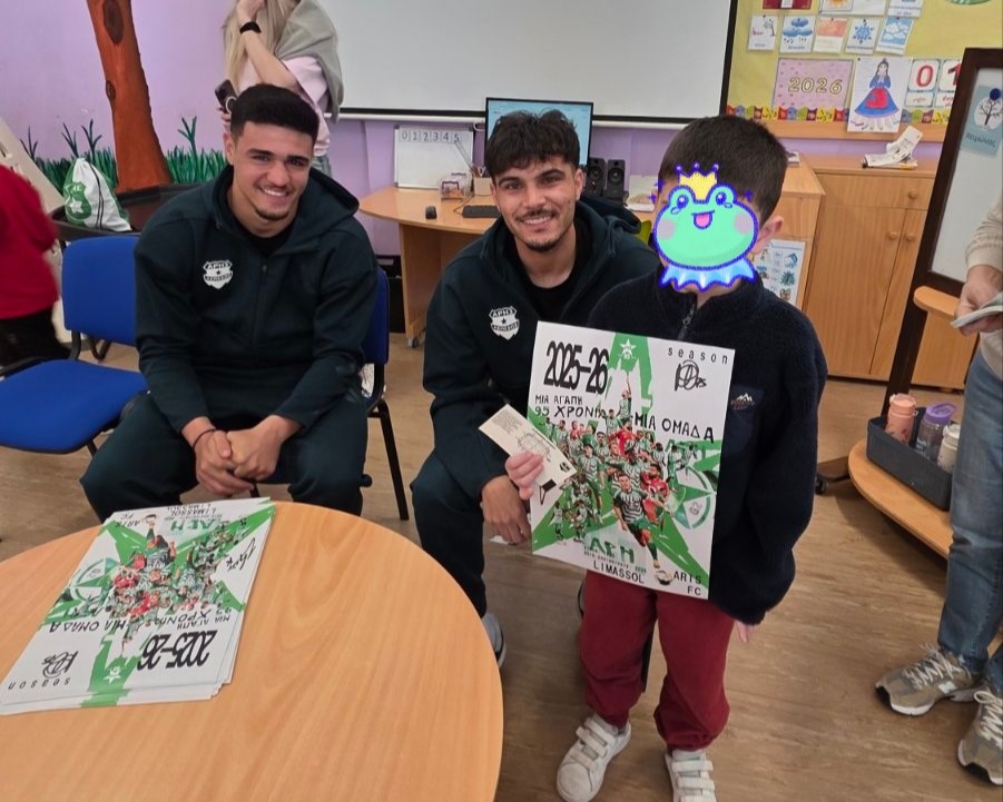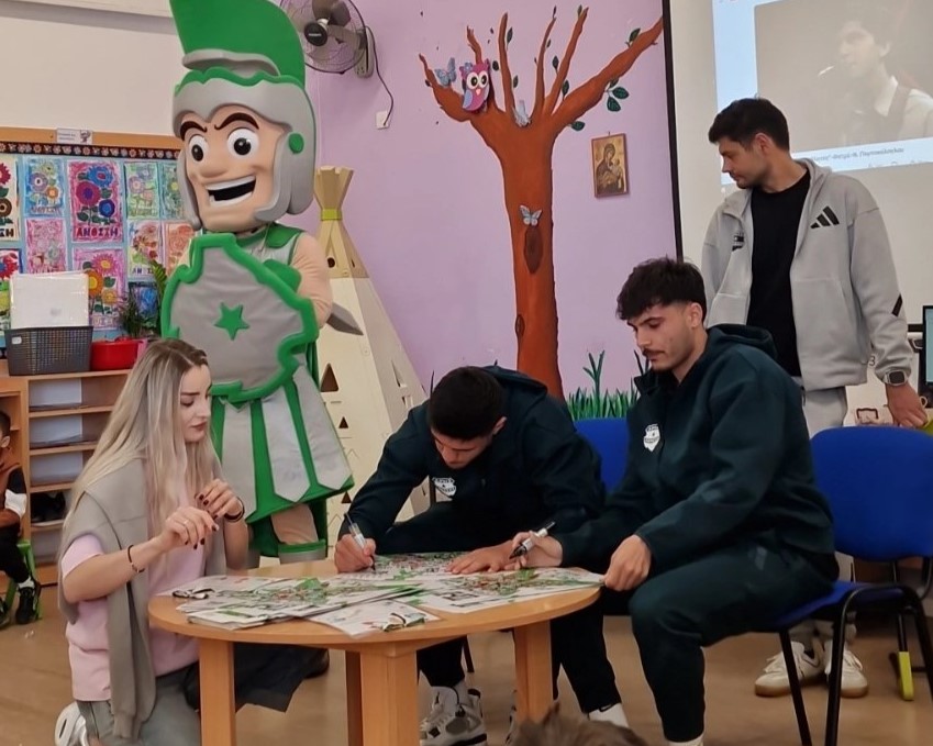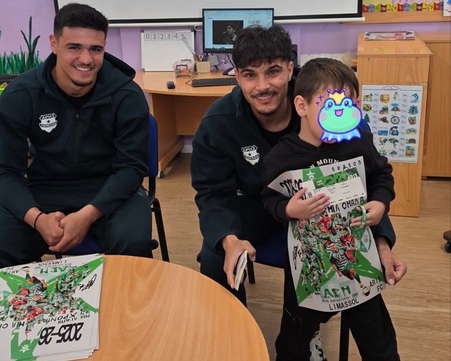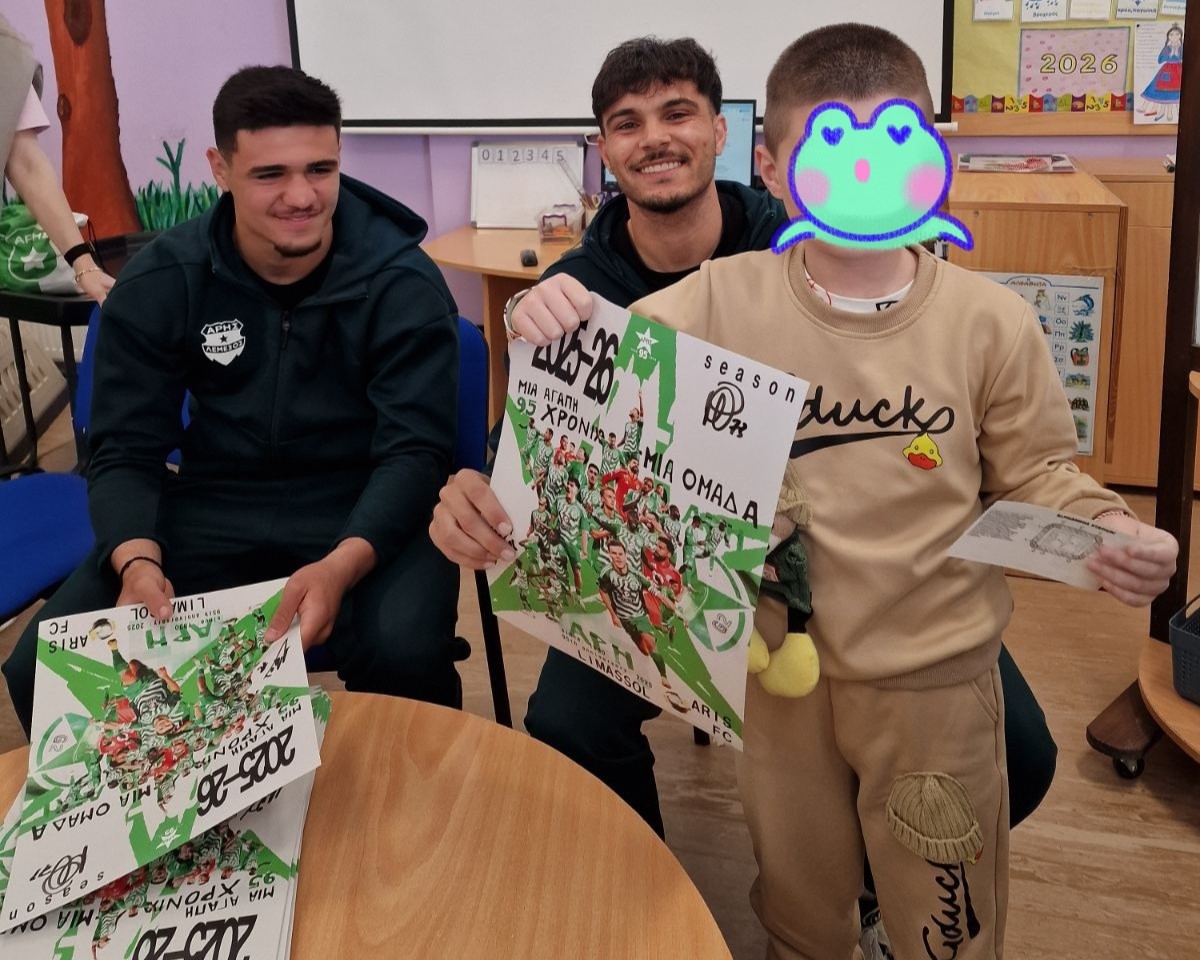 27/02 Επίσκεψη ποδοσφαιριστών και της αγαπημένης μασκότ της ομάδας Άρης Λεμεσού. Οι Χ. Χαραλάμπους και Μ. Θεοδοσίου μοίρασαν αφίσες με τις υπογραφές τους στα παιδιά μας.